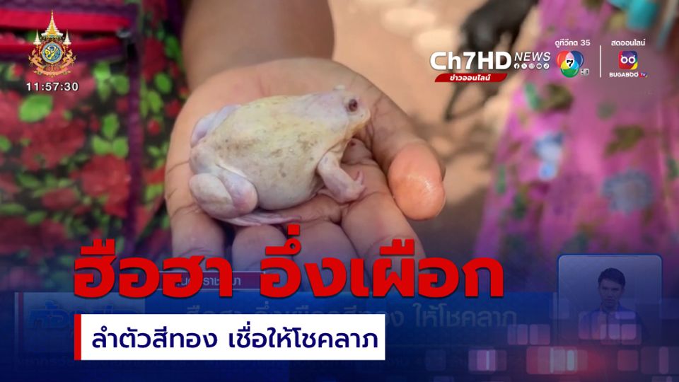 ห้องข่าวภาคเที่ยง - เป็นที่ฮือฮา ชาวบ้านในอำเภอสูงเนิน จังหวัดนครราชสีมา จับอึ่งเผือกสีทอง ได้ในช่วงฝนตก เชื่อว่ามาให้โชคลาภ