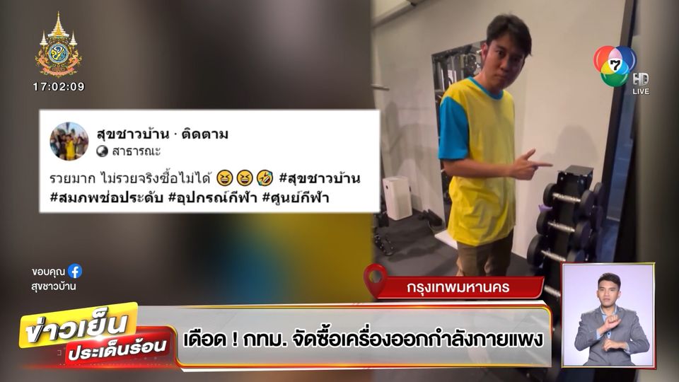 ข่าวเย็นประเด็นร้อน - โซเชียลวิจารณ์กันดุเดือด หลังจากเพจดังออกมาแฉว่า กทม. จัดซื้อเครื่องออกกำลังกายราคาแพงเกินจริง แค่ศูนย์กีฬา 2 ที่จัดซื้อรวมกัน 10 ล้านบาท ลู่วิ่งเครื่องเดียว 7 แสนกว่าบาท ล่าสุด เพจสุขชาวบ้านได้อัดคลิปล้อเลียน
