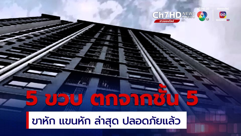 เด็กชาย อายุ 5 ขวบ พลัดตกจากชั้น 5 ของคอนโด ขาขวาหัก แขนขวาหัก ล่าสุด อาการปลอดภัยแล้ว ขณะที่ ผู้ปกครองของเด็กไม่มีใครอยู่ในห้อง ออกไปข้างนอก ทิ้งเด็กนอนหลับอยู่ในห้องลำพัง พอเด็กตื่นนอนไม่เจอใครจึงเดินไปเปิดประตูระเบียงหลังห้อง ก่อนจะพลัดตกลงจากอาคาร