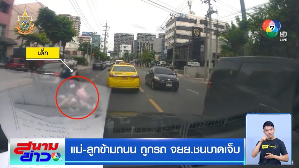 สนามข่าว 7 สี - อุบัติเหตุไม่อยากมีใครให้เกิด คลิปนี้คุณแม่จูงมือลูกพาเดินข้ามถนน ช่วงรถติด ข้ามอีกเลนก็จะถึงทางเท้า รถเริ่มเคลื่อนตัว คุณแม่รีบวิ่งข้าม จากนั้นเกิดอะไรขึ้น ไปดู