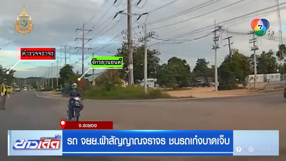 ข่าวเด็ด 7 สี - ภาพจากกล้องหน้ารถเก๋งช่วงเช้าที่ผ่านมา จับภาพได้ขณะที่รถกำลังจะเลี้ยวขวา หน้าทางเข้าโรงงานแห่งหนึ่ง ริมถนนสายหนองละลอก-บ้านค่าย อำเภอบ้านค่าย จังหวัดระยอง โดยมีตำรวจจราจรโบกให้เลี้ยว และยกสัญญาณมือให้รถที่ขับสวนมาหยุดจอด แต่จู่ ๆ มีรถจักรยานยนต์ ขับฝ่าพุ่งเข้าชนด้านหน้ารถเก๋ง จนเสียหลักล้ม ได้รับบาดเจ็บ ตำรวจ สภ.บ้านค่าย จะเชิญตัวทั้งคนขับรถเก๋ง และรถจักรยานยนต์ มาให้ปากคำเพิ่มเติม เพื่อเจรจาค่าเสียหาย และดำเนินการตามกฎหมายต่อไป