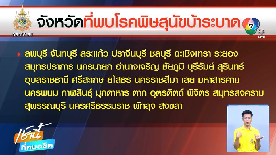 เช้านี้ที่หมอชิต - พิษภัยใกล้ตัวอย่างโรคพิษสุนัขบ้า กรมปศุสัตว์ ก็เผยโรคนี้เกิดการระบาดแล้วในพื้นที่ 30 จังหวัด หรือรวมแล้วก็ 179 จุดทั่วประเทศ