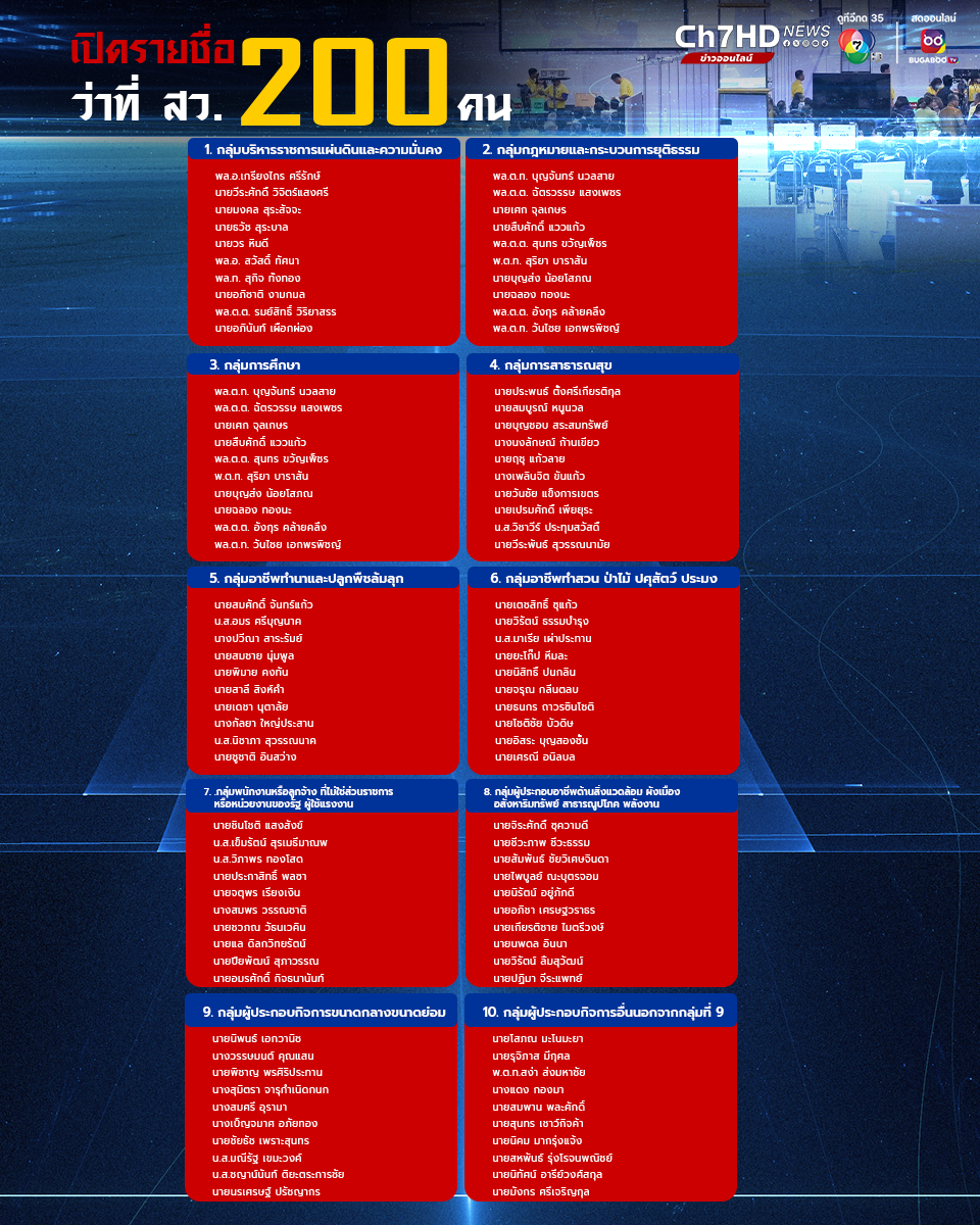 รายชื่อว่าที่ สว. 200 คน ดังนี้