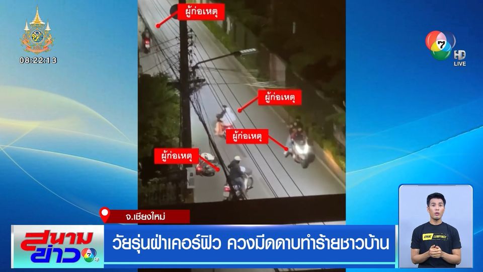 สนามข่าว 7 สี - แก๊งวัยรุ่นที่จังหวัดเชียงใหม่ อุกอาจควงมีดไล่ฟันชาวบ้าน และคนขับรถบนถนน โดยไม่กลัวเคอร์ฟิว ชาวบ้านจี้ตำรวจจับให้ได้ เพื่อคืนความปลอดภัยให้ชุมชน เพราะตอนนี้ต้องอยู่กันอย่างหวาดกลัว