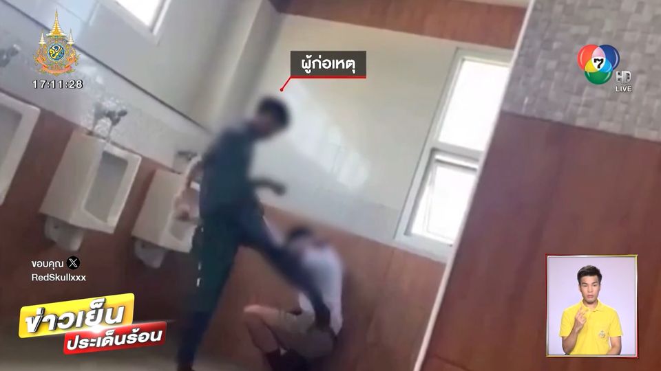 ผู้ใช้บัญชี RedSkull ในแอปพลิเคชัน X เผยแพร่ภาพวินาทีเด็กนักเรียนชายใส่ชุดพละ กำลังพูดคุยต่อว่าเด็กนักเรียนชายอีกคน ในชุดเครื่องแบบของโรงเรียน จากนั้นเด็กนักเรียนชุดขาวก็ค่อย ๆ นั่งลง ก่อนถูกเตะใส่บริเวณชายโครง 2 ครั้ง
