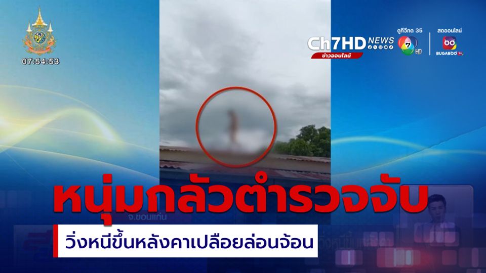คำพูดที่ว่ากลัวจนลนลานยังใช้ได้จริง ซึ่งจากสภาพคือกลัวตำรวจต้องหนี ทั้งในสภาพเปลือยกลายล่อนจ้อน เดินไปเดินมาบนหลังคาบ้านเช่าหลังหนึ่ง อยู่บ้านหนองโข่ย ตำบลท่าพระ อำเภอเมืองขอนแก่น กว่าตำรวจชุดสืบสวน สภ.เมืองขอนแก่น จะงัดสารพัดวิธีเกลี้ยกล่อมผู้ก่อเหตุให้ใจอ่อน ยอมลงมอบตัวได้นั้นใช้เวลานานนับชั่วโมง