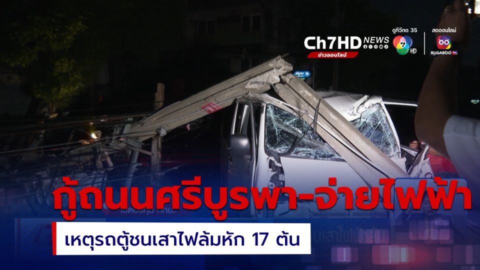 เจาะประเด็นข่าว 7HD - ความคืบหน้าเหตุรถตู้พุ่งชนเสาไฟฟ้าหัก 17 ต้น ในพื้นที่กรุงเทพมหานคร ตลอดทั้งวันนี้เจ้าหน้าที่หลายฝ่ายเข้าเคลียร์พื้นที่ เปิดการจราจร และเร่งจ่ายกระแสไฟฟ้าให้กับประชาชน