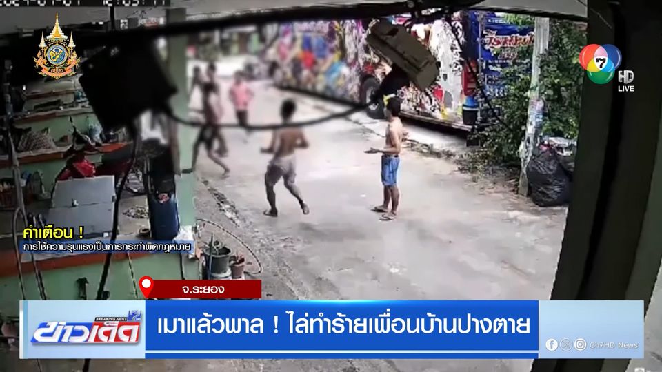 ข่าวเด็ด 7 สี - กล้องวงจรปิดที่หน้าห้องเช่า อำเภอปลวกแดง จังหวัดระยอง จับพฤติกรรมสุดป่าเถื่อนของชายอายุ 30 ปีอยู่ในอาการมึนเมาเข้าไปทำร้ายนายกฤษณะ อายุ 42 ปี ขณะนั่งเล่นอยู่หน้าห้องอาศัยจังหวะช่วงที่นายกฤษณะไม่ทันระวังตัวลงมือทำร้ายจนล้ม และใช้เท้าถูกกระทืบซ้ำไปหลายครั้ง ก่อนที่เพื่อนบ้านที่เห็นเหตุการณ์จะรีบเข้าไปช่วย จนผู้ก่อเหตุหนีไปแบบสะบักสะบอม โดยอาสากู้ภัยนำตัวผู้บาดเจ็บส่งโรงพยาบาลปลวกแดง เหตุเกิดช่วงบ่ายที่ผ่านมา (7 ก.ค.) โดยอาการคนเจ็บขณะนี้สาหัส เลือดออกปาก จมูก และมีอาการเลือดคั่งในสมองต้องส่งต่อไปรักษาที่โรงพยาบาลระยอง และจนถึงขณะนี้ยังไม่มีใครรู้ถึงสาเหตุซึ่งญาติคนเจ็บได้เข้าแจ้งความไว้แล้ว ที่ สภ.ปลวกแดง