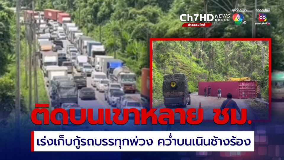 เร่งกู้รถบรรทุกพ่วง 18 ล้อ พลิกคว่ำบนเนินช้างร้อง เพื่อเปิดช่องจราจร ขณะที่ประชาชน นักท่องเที่ยว ได้รับความเดือดร้อนหนัก หลังติดอยู่บนเขานานหลายชั่วโมง