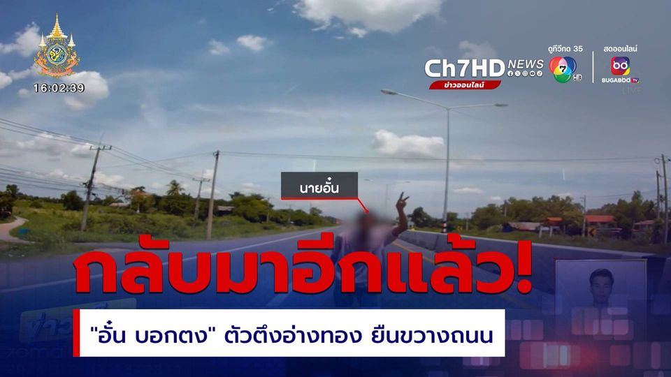 ข่าวเย็นประเด็นร้อน - กลับมาอีกแล้ว "อั๋น บอกตง" ตัวตึงเมืองอ่างทอง ยืนขวางรถกลางถนนที่เดิม หากเบรกไม่ทันอาจถึงกับชีวิต