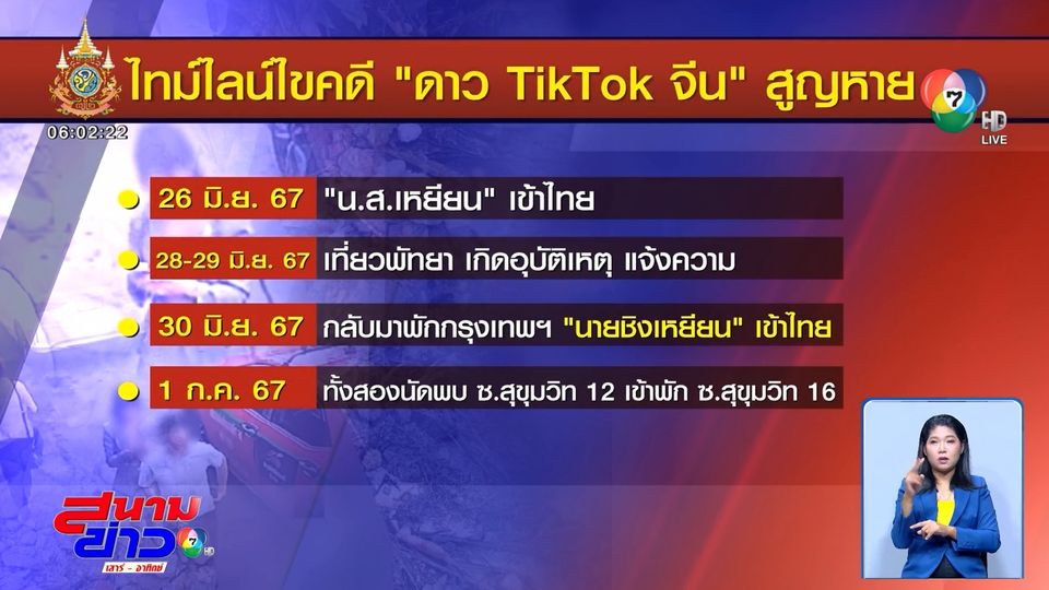 ก่อนจะมาถึงจุดนี้ได้ ตำรวจไล่เรียงข้อมูลไทม์ไลน์ จนสรุปได้ว่า นางสาวเหยียน เดินทางเข้าไทยมาคนเดียวตั้งแต่ 26 มิถุนายน