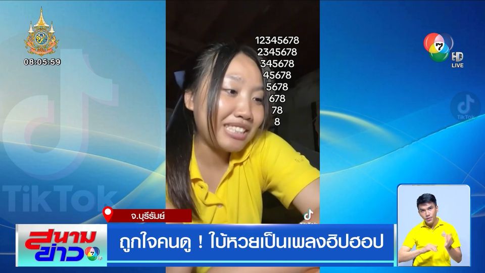 ได้ฟังคลิปนี้แล้ว เชื่อว่าคุณผู้ชมหลายคนน่าจะได้เลขเด็ดไว้ในใจกันบ้างแล้ว ซึ่งนี่เป็นคลิปที่ สาวอายุ 16 ปี ชาวจังหวัดบุรีรัมย์ ร้องเพลงแนวฮิปฮอป โดยมีเนื้อเพลงแค่ตัวเลข 1 2 3 4 5 6 7 และ 8 วนไปวนมา บันทึกคลิปอัปโหลดลงในบัญชี TikTok ของเธอ กลับกลายเป็นสร้างความฮือฮาเป็นไวรัลเพียงชั่วข้ามคืน