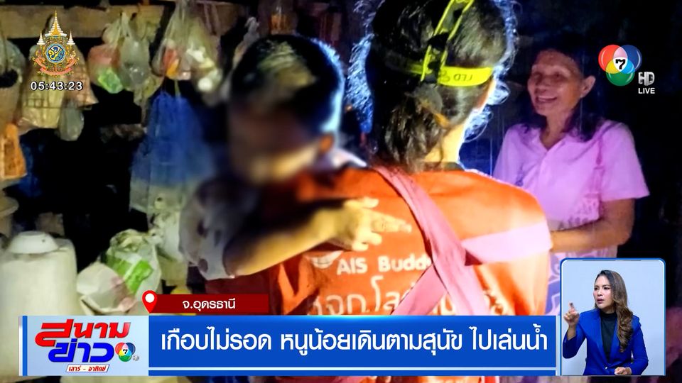 สนามข่าวเสาร์-อาทิตย์ - เตือนผู้ปกครองมีลูกเล็กอย่าให้เด็กคลาดสายตา เช่นข่าวนี้ คุณแม่กินยาเผลอหลับ ลูกชายอายุ 3 ขวบ เดินตามสุนัขไกลกว่า 3 กิโลเมตร ไปลงเล่นน้ำ เคราะห์ดีเจ้าของที่นาช่วยกลับมาได้ปลอดภัย