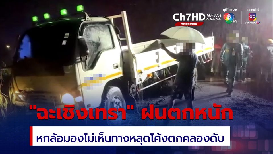 ฝนถล่มฉะเชิงเทรา หกล้อฝ่าสายฝนหลุดโค้งตกคลองดับสลด