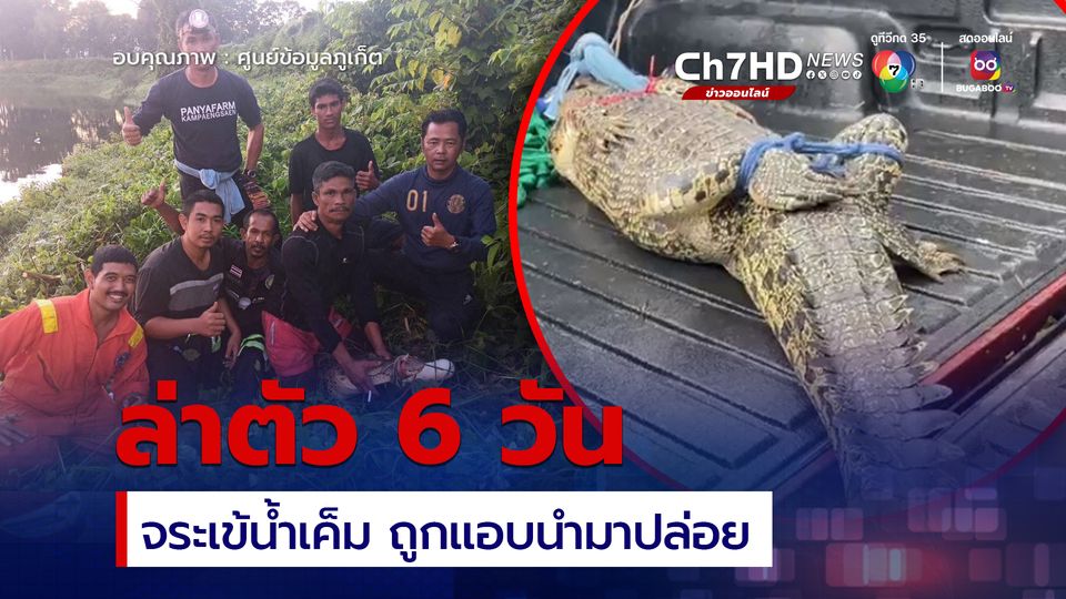 จับได้แล้ว หลังล่าตัว 6 วัน “น้องพารา” จระเข้น้ำเค็มที่ถูกแอบมาปล่อยไว้ในขุมน้ำเอกชน บ้านพารา ป่าคลอก ภูเก็ต