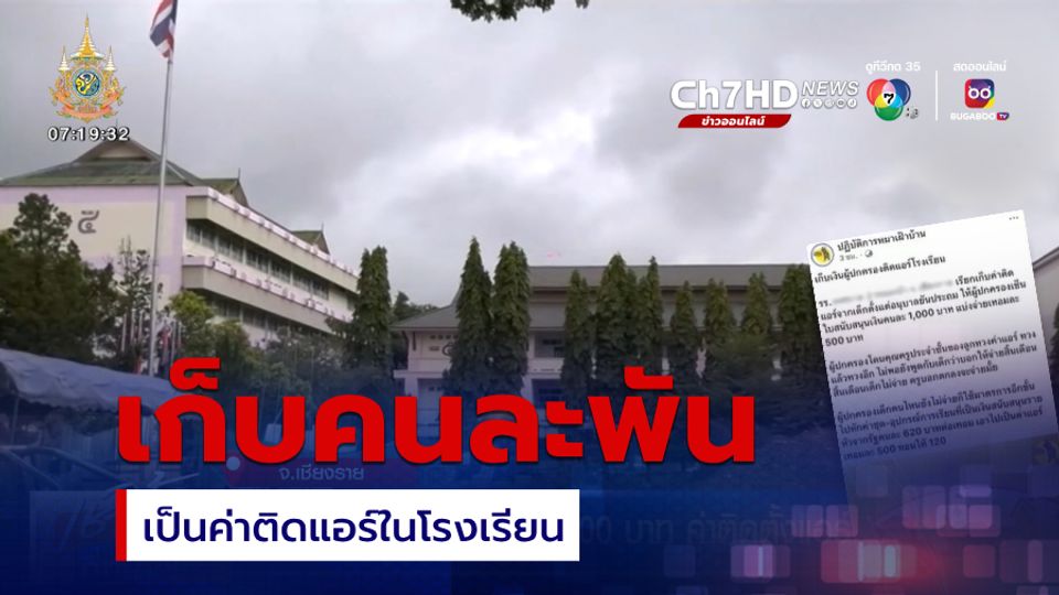 เช้านี้ที่หมอชิต - โรงเรียนจังหวัดเชียงราย เก็บเงินผู้ปกครองหัวละ 1,000 บาท เพื่อเป็นค่าติดแอร์ในโรงเรียน พร้อมให้เซ็นใบสนับสนุน หากใครไม่จ่าย จะหักจากเงินสนับสนุนรัฐ