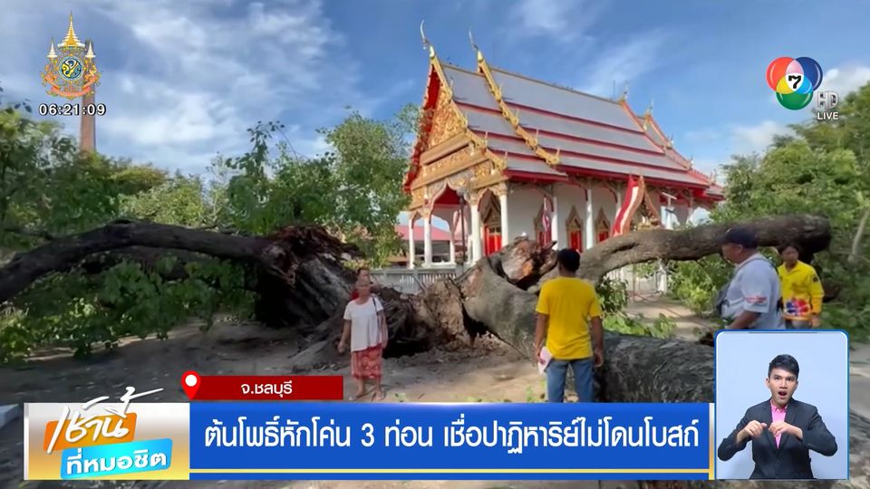 เช้านี้ที่หมอชิต - ต้นโพธิ์อายุประมาณ 200 ปี หักโค่นลงมาเป็น 3 ท่อน แต่ไม่ถูกโบสถ์ ชาวบ้านเชื่อปาฏิหาริย์ไม่ล้มทับโบสถ์ของวัด