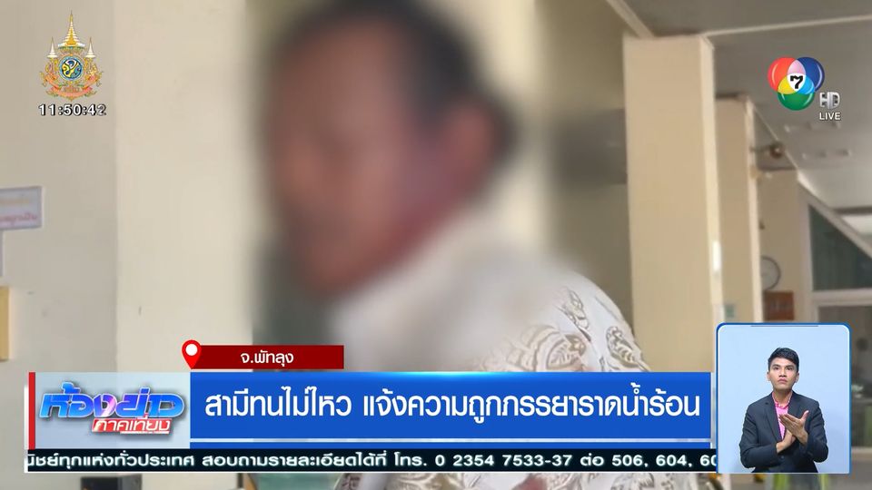 ห้องข่าวภาคเที่ยง - ภรรยาไม่พอใจสามี ต้มน้ำร้อนจนเดือด ก่อนยกราดสามีบาดเจ็บหนัก ถูกนำตัวส่งโรงพยาบาลพัทลุง ขณะที่พนักงานสอบสวน สภ.เมืองพัทลุง สอบปากคำผู้บาดเจ็บแล้ว คาดมาจากปมหึงหวง