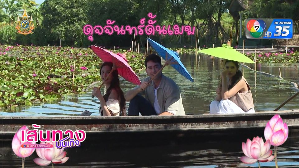 เส้นทางบันเทิง - พาเที่ยวบึงบัวแดง กับ 3 นักแสดง จากละคร ดุจจันทร์ดั้นเมฆ อย่างที่ เนย ปภาดา บอกเลยว่า นี่ไม่ได้มาเที่ยว แต่บรรยากาศ และความชิลในฉากนี้เหมือนทุกคนได้มาศึกษาธรรมชาติ ทั้ง เนย ปภาดา, ปูเป้ เกศรินทร์ และ หลุยส์ เฮส ก็สนุกสนาน ชมนก ชมดอกบัว และยังมีรูปปั้นพญานาคกลางบึงให้ทุกคนได้กราบสักการะ ในฉากอาจจะตึง ๆ โกรธกันหน่อย ๆ แต่เบื้องหลังทุกคนเอนจอยมาก ๆ ผลัดกันถ่ายรูป ผลัดกันบังแดด