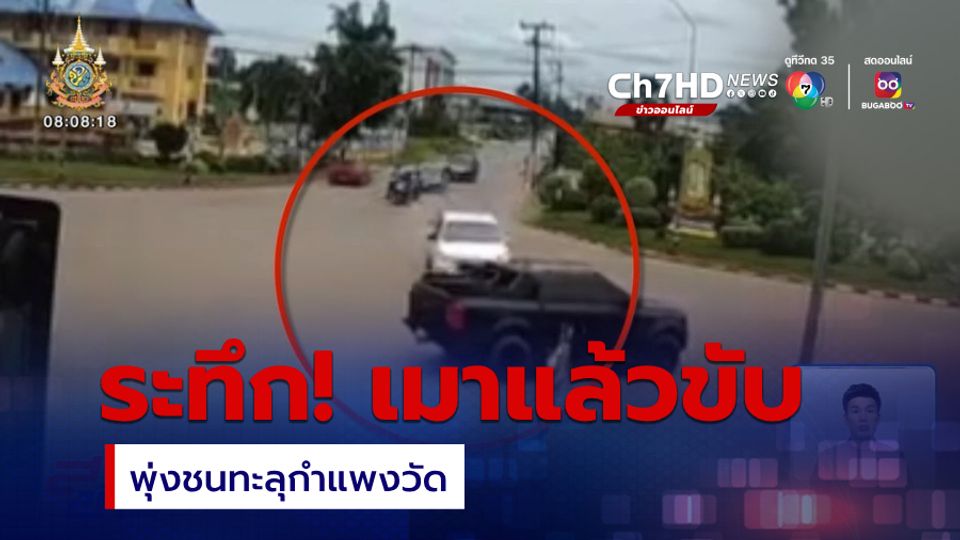 สนามข่าว 7 สี - นาทีเฉียดตาย คนขับรถกระบะเมาสุราขาดสติ ฝ่าสัญญาณไฟจราจร พุ่งชนรถคันอื่น ทะลุกำแพงวัดพังพินาศ