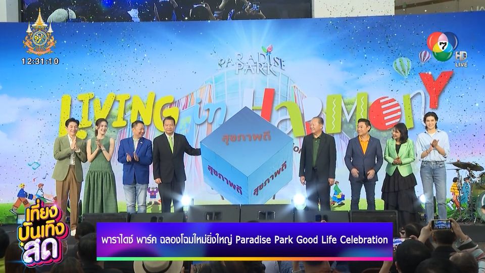 เที่ยงบันเทิงสด - Paradise Park ศูนย์การค้าในเครือ MBK ฉลองปรับโฉมใหม่ครั้งใหญ่ในรอบ 13 ปี ทุ่มทุนกว่า 1,000 ล้านบาท กับ Paradise Park Good Life Celebration มอบประสบการณ์ครั้งใหม่ให้กับลูกค้าในคอนเซปต์ ใหม่ LIVING in HARMONY ใส่ใจการใช้ชีวิต กินดี อยู่ดี สุขภาพดี เรียกว่าเติมเต็มพื้นที่แห่งนี้ให้เต็มไปด้วยความสุข กับการใช้ชีวิตดี ๆ
