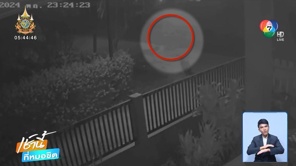 ตรวจภาพวงจรปิดพบว่า ถังขยะปลิวข้ามถนนออกไปในพงหญ้า ทั้งที่ไม่มีลมพัด ไม่มีฝนตก