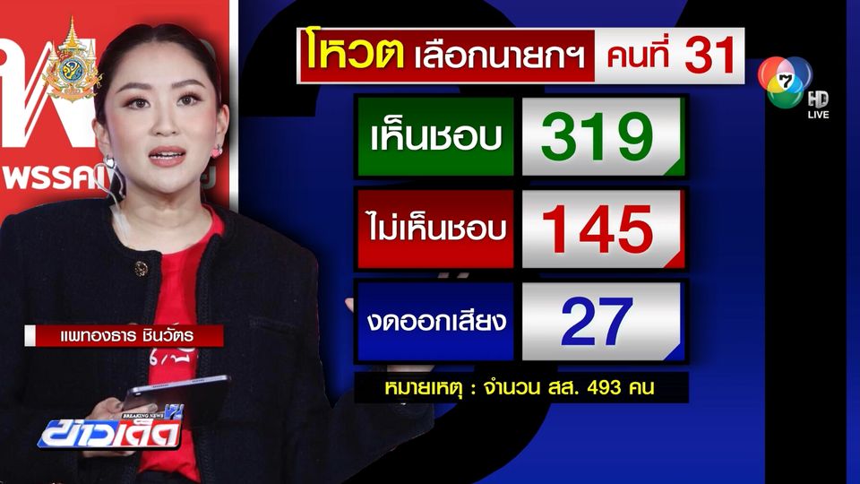 ข่าวเด็ด 7 สี - สรุปการลงมติของสภาผู้แทนราษฎร ที่เลือก อุ๊งอิ๊ง แพทองธาร ชินวัตร เป็นว่าที่นายกรัฐมนตรี