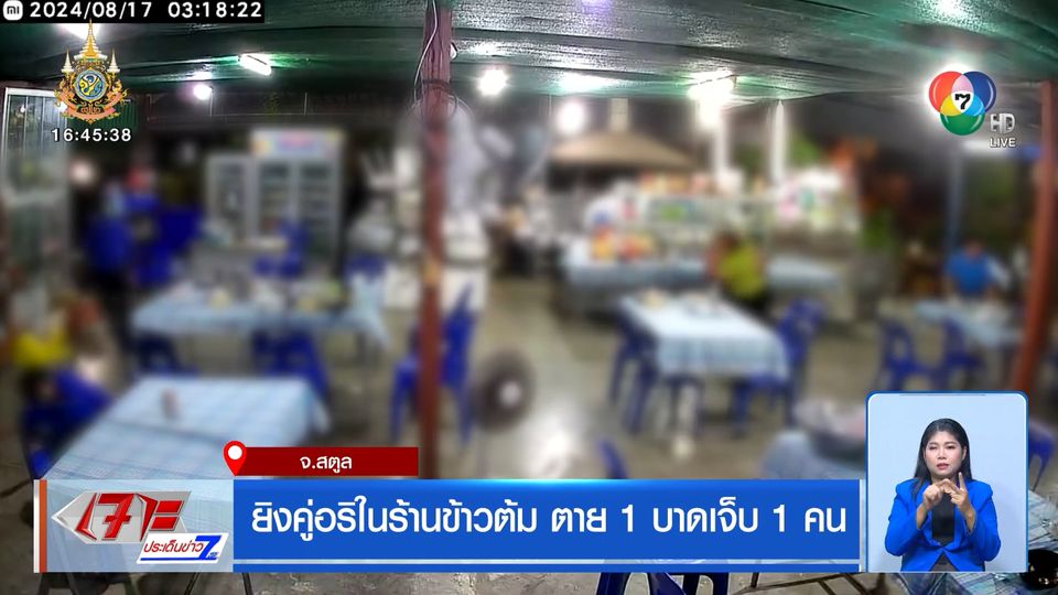 เจาะประเด็นข่าว 7HD - คู่อริ 2 ฝ่าย ดื่มกินกันเสร็จ มาต่อที่ร้านข้าวต้มในอำเภอละงู จังหวัดสตูล นั่งโต๊ะใกล้กัน ก่อนมีปากเสียง แล้วออกไปเคลียรห์หน้าร้าน แต่ไม่จบ อีกฝ่ายชักอาวุธปืนกระหน่ำยิงกว่า 20 นัด ดังสนั่น ทำให้คนในร้านข้าวต้ม ต้องวิ่งหนีตาย