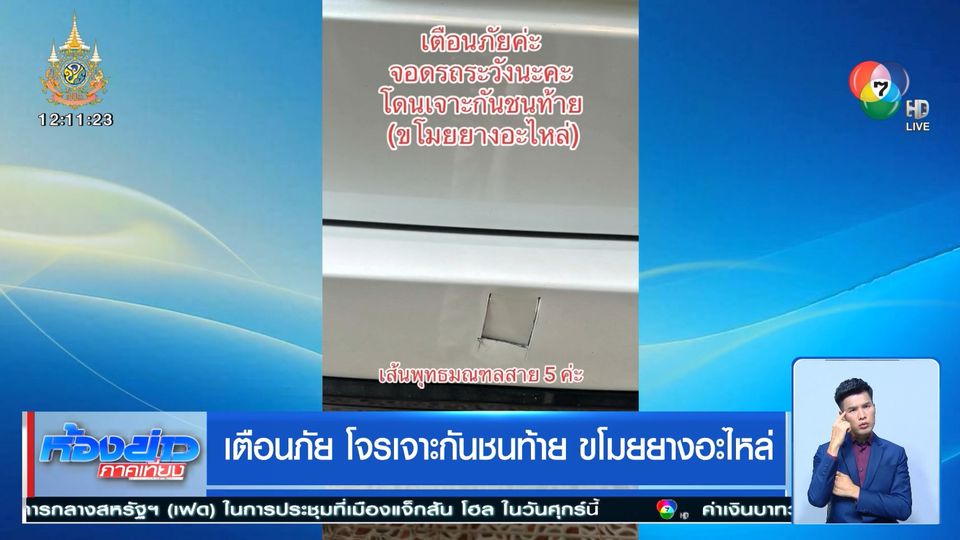 เหตุการณ์นี้เกิดขึ้นที่พุทธมณฑล สาย 5 ทีมข่าวได้พูดคุยกับ คุณส้ม เจ้าของรถ เล่าว่า เมื่อวันที่ 17 สิงหาคมที่ผ่านมา เวลาประมาณ 20.00 น. เธอไปกินข้าวกับลูกสาว และจอดรถไว้ริมถนน ก็คิดว่าปลอดภัย เพราะเห็นรถหลายคันก็จอดแบบนี้ ใช้เวลากินข้าว ประมาณ 1 ชั่วโมงเท่านั้น ก่อนขับรถกลับบ้าน จนกระทั่งเช้าวันรุ่งขึ้น เห็นว่ากันชนท้ายโดนเจาะ และยางอะไหล่ที่อยู่ใต้ท้องรถถูกขโมยไป