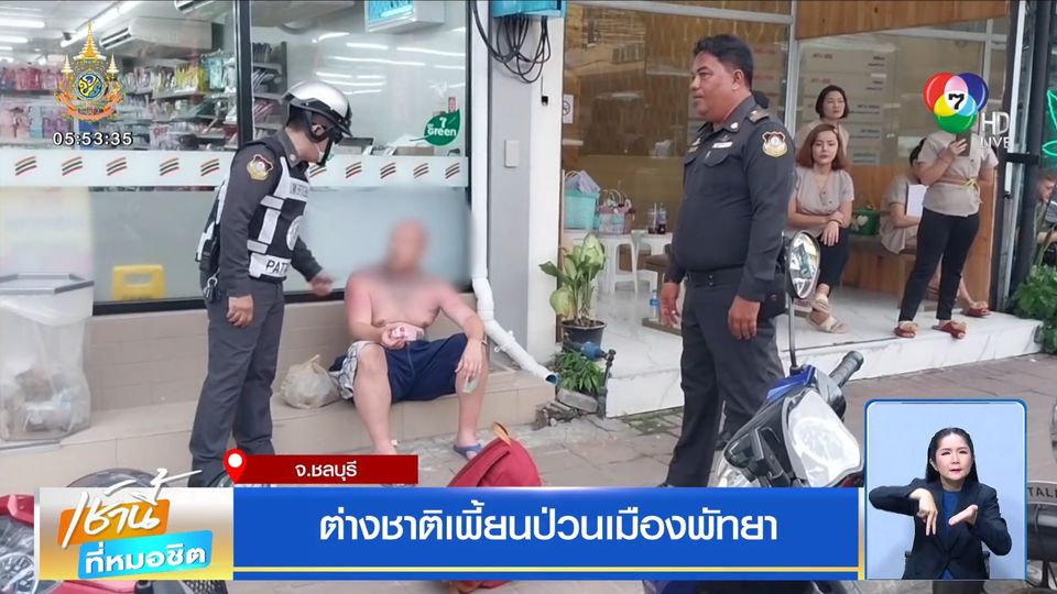 เป็นภาพขณะเจ้าหน้าที่เทศกิจ และตำรวจ สภ.เมืองพัทยา เข้าตรวจสอบชายชาวต่างชาติที่สวมกางเกงขาสั้นสีดำ ถอดเสื้อ และมีการสักตามร่างกาย นั่งอยู่บริเวณหน้าร้านสะดวกซื้อ ริมถนนพัทยาสาย 2 หมู่ 9 ตำบลหนองปรือ อำเภอบางละมุง จังหวัดชลบุรี ในมือถือธนบัตร 20 บาท และตุ๊กตาสีชมพู 1 ตัว นอกจากนี้ยังมีกระเป๋าเป้สีแดงวางอยู่ข้างตัว เจ้าหน้าที่จึงเข้าไปเจรจาพูดคุย และนำตัวไปตรวจสอบ และสงบสติอารมณ์ที่ สภ.เมืองพัทยา