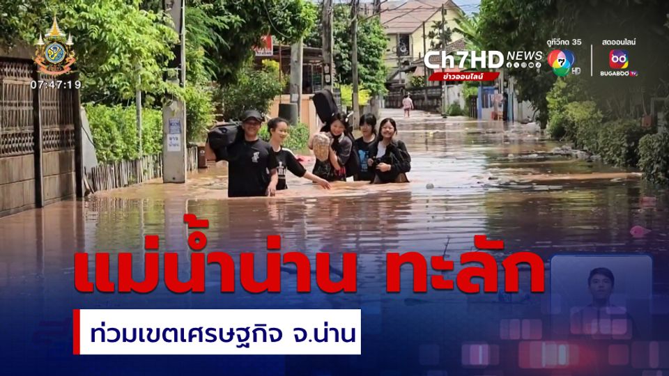 สนามข่าว 7 สี - สถานการณ์น้ำท่วมหลายจังหวัดพื้นที่ภาคเหนือ ขยายวงกว้าง ยังน่าเป็นห่วง โดยที่จังหวัดน่าน มวลน้ำที่ไหลบ่าท่วมพื้นที่เศรษฐกิจ และวัดภูมินทร์ ถูกน้ำท่วมเสียหาย