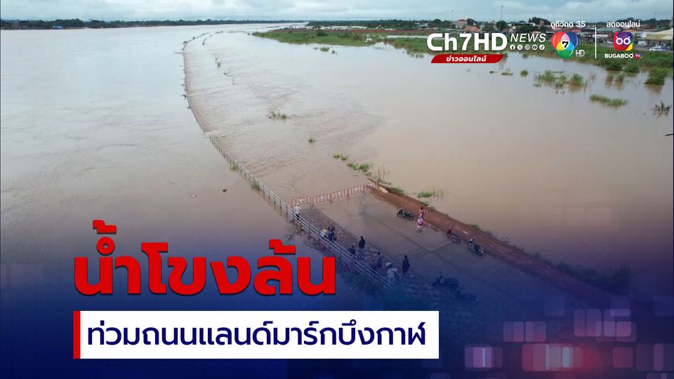 น้ำโขงล้นตลิ่งไหลเข้าท่วมถนนแลนด์มาร์กบึงกาฬยาวกว่า 3 กิโลเมตร