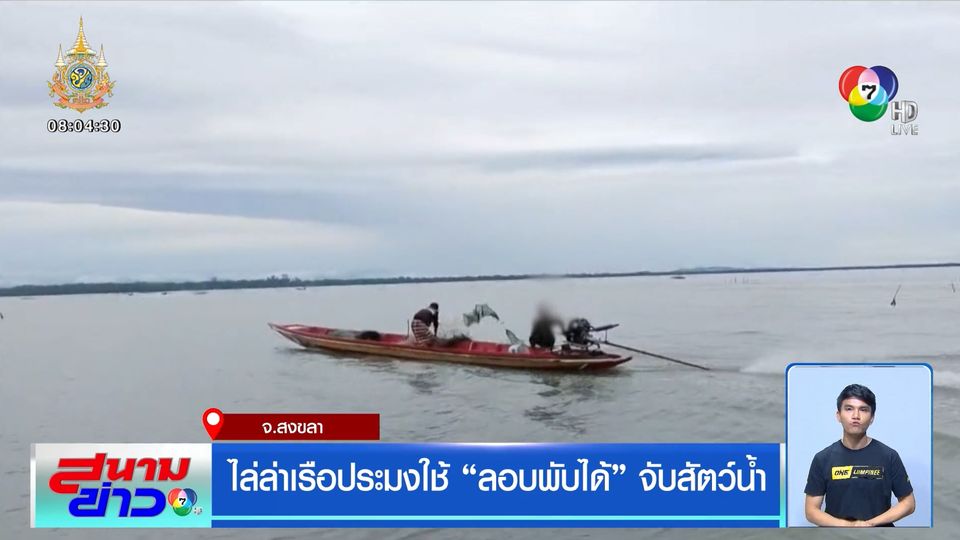 สนามข่าว 7 สี - ลงใต้ไปจังหวัดสงขลา เจ้าหน้าที่ประมง สนธิกำลังตำรวจน้ำ ไล่ล่าเรือประมงกลางทะเล แอบใช้ "ลอบพับได้" หรือ "ไอ้โง่" ดักจับสัตว์น้ำ