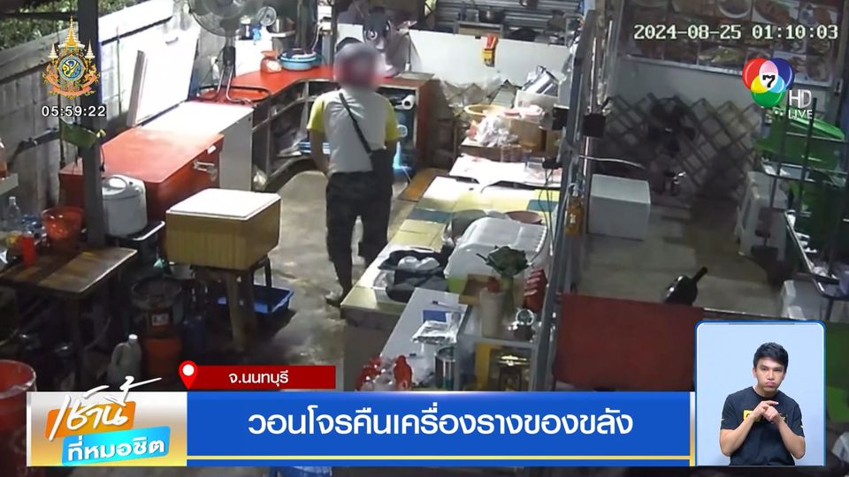 ภาพจากกล้องวงจรปิด ภายในร้านขายอาหารตามสั่ง ในตำบลบางใหญ่ อำเภอบางใหญ่ จังหวัดนนทบุรี ที่บันทึกภาพคนร้าย เป็นชายวัยกลางคน ใส่หมวกกันน็อกเต็มใบ เดินเข้ามารื้อค้น ทรัพย์สินภายในร้าน โดยรื้อกระปุกเก็บเงิน แล้วนำเศษเงิน 16 บาท พระ และวัตถุมงคล ที่เก็บไว้ในกระปุ๊กใส่กระเป๋าสะพาย ก่อนจะเดินหนีไปจากร้าน