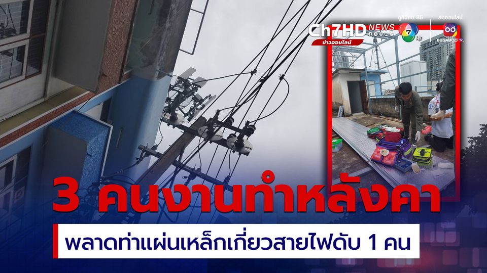 อุทาหรณ์ 3 คนงานมุงหลังคา ดึงแผ่นเหล็กขึ้นบนดาดฟ้า พลาดท่าเกี่ยวสายไฟแรงสูง ดับ 1 เจ็บสาหัส 2 เมียเผย สามีรับเหมาทำหลังคามา 40 ปี ครั้งนี้ไม่ได้ใส่ถุงมือกันไฟ