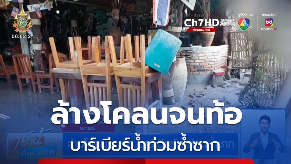 เช้านี้ที่หมอชิต - ลงไปที่พื้นที่ภาคใต้ ฝนที่ตกหนักเกิดน้ำท่วมหลายจุดที่จังหวัดกระบี่ ผู้ประกอบการบาร์เบียร์ท้อ น้ำท่วมซ้ำซาก จากปัญหารุกที่