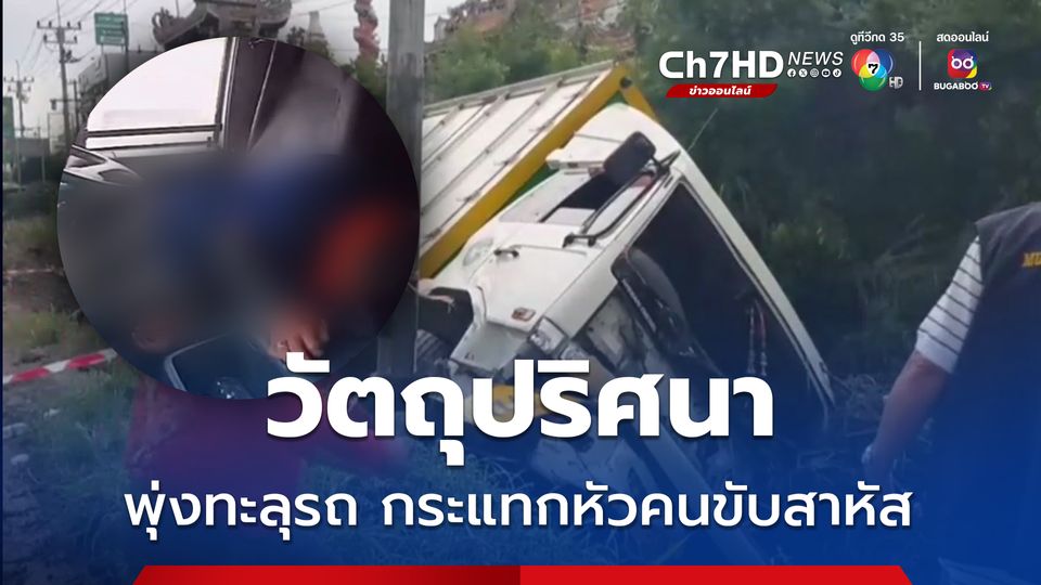 ระทึกวัตถุปริศนาพุ่งทะลุกระจกรถ กระแทกศีรษะคนขับ กะโหลกยุบหมดสติ ขณะที่รถกำลังวิ่งอยู่บนถนน ทำให้รถเสียหลักตกข้างทาง ส่วนคนขับเจ็บสาหัส