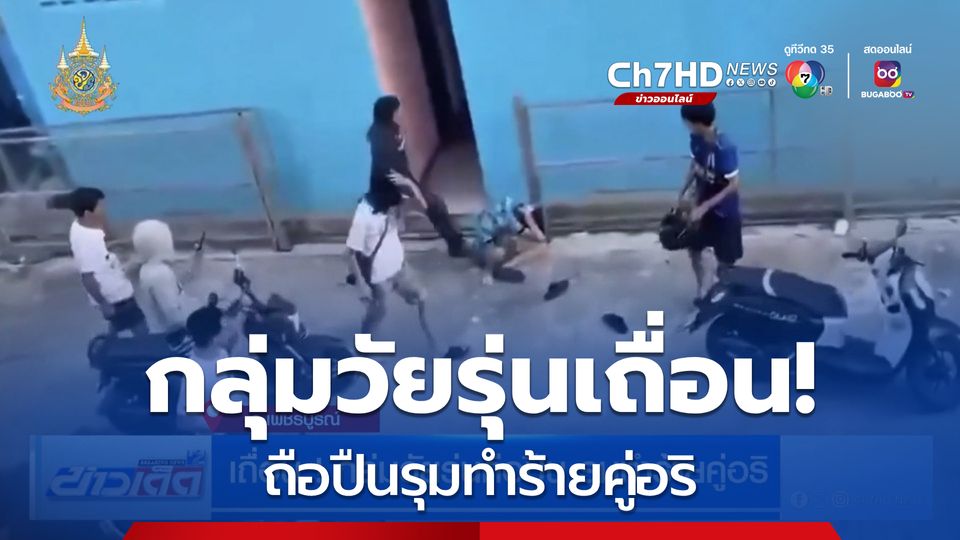 เถื่อน ! กลุ่มวัยรุ่นถือปืนรุมทำร้ายคู่อริ