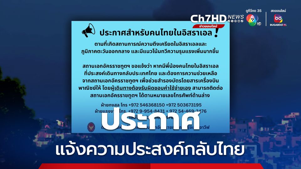 ด้วยความห่วงใย จากสถานเอกอัครราชทูต ณ กรุงเทลอาวีฟ