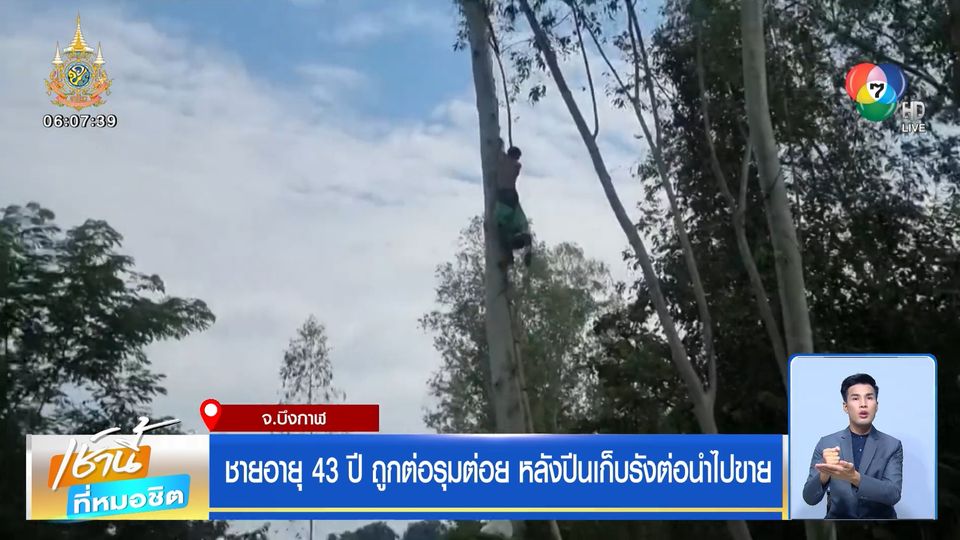 เป็นสภาพของนายสงกรานต์ เหล่าพักสาน อายุ 43 ปี ที่ไปติดอยู่บริเวณกิ่งต้นยูคาลิปตัสสูงกว่า 10 เมตร หลังปีนขึ้นไปเพื่อเก็บรังต่อ ที่อยู่บนต้นยูคาลิปตัส ในพื้นที่ หมู่ 1 บ้านดอนกลาง ตำบลบึงโขงหลง อำเภอบึงโขงหลง จังหวัดบึงกาฬ แล้วถูกต่อรุมต่อย จนหมดแรงและตกลงมาอยู่ที่หิ่งบริเวณกลางลำต้นยูคาลิปตัส โดยมีผู้ที่อยู่ด้านล่างพยายามช่วยเหลือ จุดไฟเผากิ่งไม้ให้เกิดควันเพื่อไล่ต่อที่ยังคงบินวนอยู่รอบตัวนายสงกรานต์