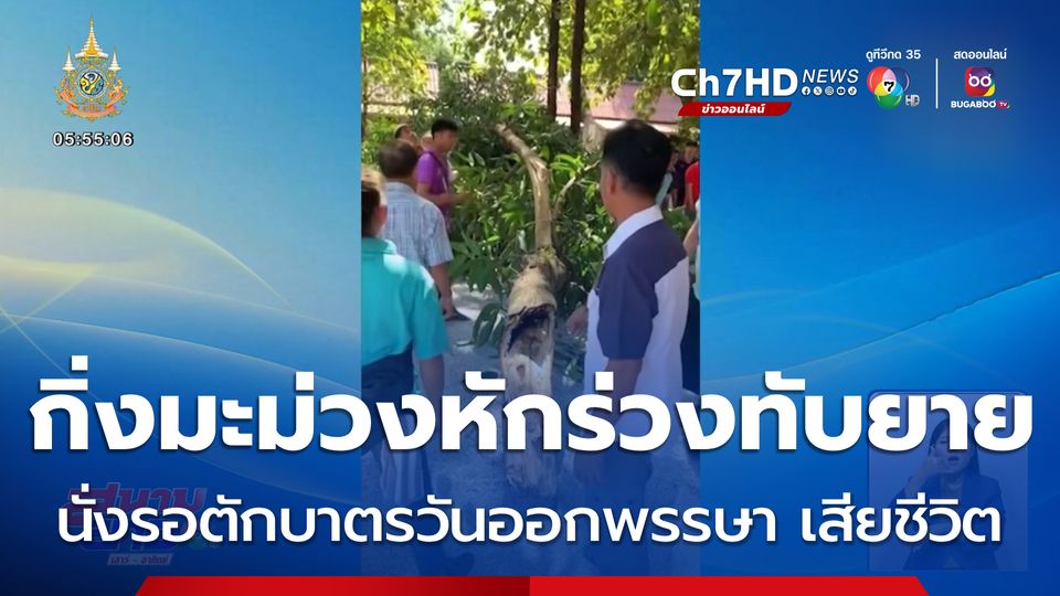 สนามข่าวเสาร์-อาทิตย์ - เหตุการณ์นี้ต้องขอแสดงความเสียใจกับครอบครัวของคุณยาย หลังคุณยายอายุ 87 ปี ไปรอตักบาตรงานบุญออกพรรษาที่วัด แต่เกิดเหตุสลด ถูกกิ่งมะม่วงหักร่วงทับเสียชีวิต
