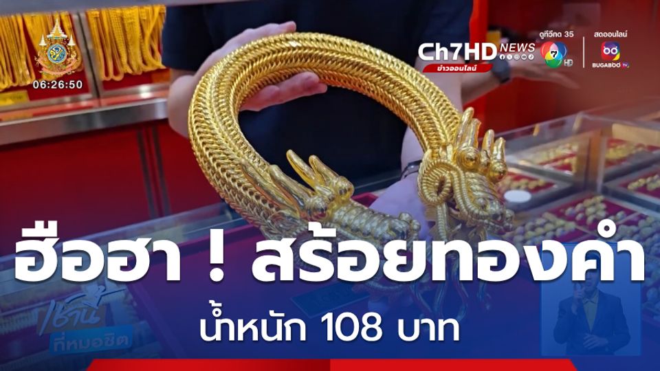 เช้านี้ที่หมอชิต - ข่าวนี้ทำฮือฮากันทั้งโซเชียล เมื่อร้านทองที่จังหวัดอุบลราชธานี ทำสร้อยคอทองคำลายพิเศษ น้ำหนัก 108 บาท หรือ 1.6 กิโลกรัม มูลค่าเกือบ 5 ล้านบาท เพราะเชื่อว่าเป็นสิริมงคลกับชีวิต และยังมีคุณค่าทางจิตใจด้วย