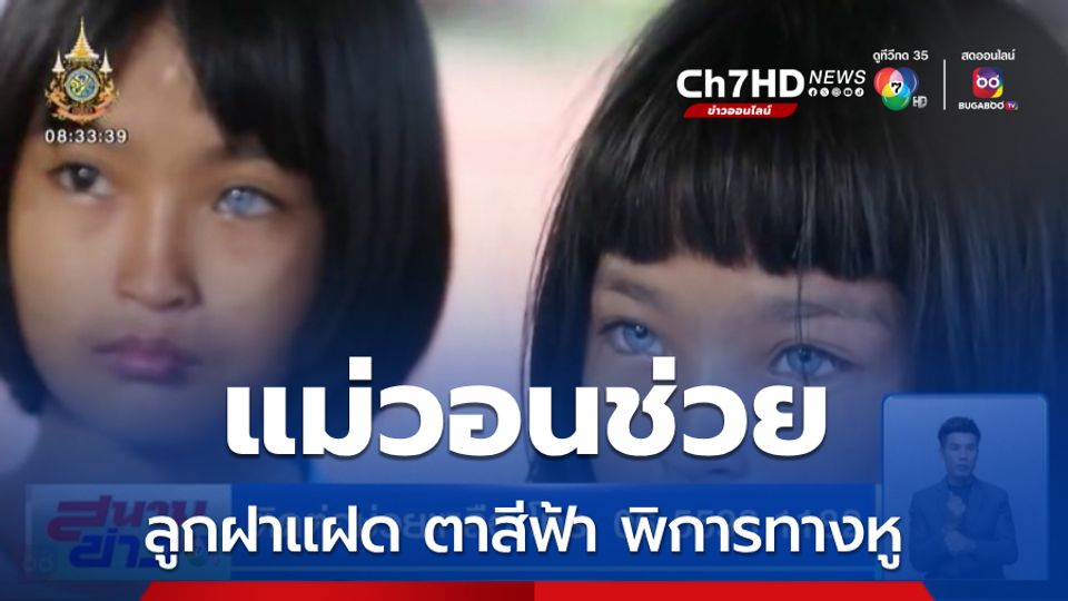 สนามข่าว 7 สี - ที่นครพนม เด็กหญิงฝาแฝดอายุ 9 ขวบ มีดวงตาสีฟ้า พิการทางหู พูดไม่ได้ แม่รายได้น้อยอยากได้เครื่องช่วยฟังให้ลูกสาว วอนผู้ใจบุญช่วยหาทางรักษา