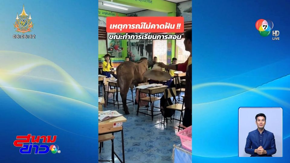 เจอแบบนี้ก็วิ่งสิ รออะไร เพื่อนใหม่ที่ว่าคือ "น้องวัว" มาอยู่ในห้องเรียนได้อย่างไร นักเรียนในห้องพอเจอแบบนี้ก็วิ่งหนีออกจากห้องอย่างรวดเร็ว ก่อนที่คุณครูจะเข้าไปตรวจสอบ แต่น้องวัวตัวแสบก็ยังวิ่งวนสำรวจรอบห้อง ไม่ยอมออกมาสักที สุดท้ายหลังสำรวจจนพอใจก็วิ่งออกจากห้องเรียนไป พุ่งตรงไปทางสนามหญ้า เหตุการณ์นี้เกิดที่โรงเรียนแห่งหนึ่ง ที่จังหวัดกาญจนบุรี
