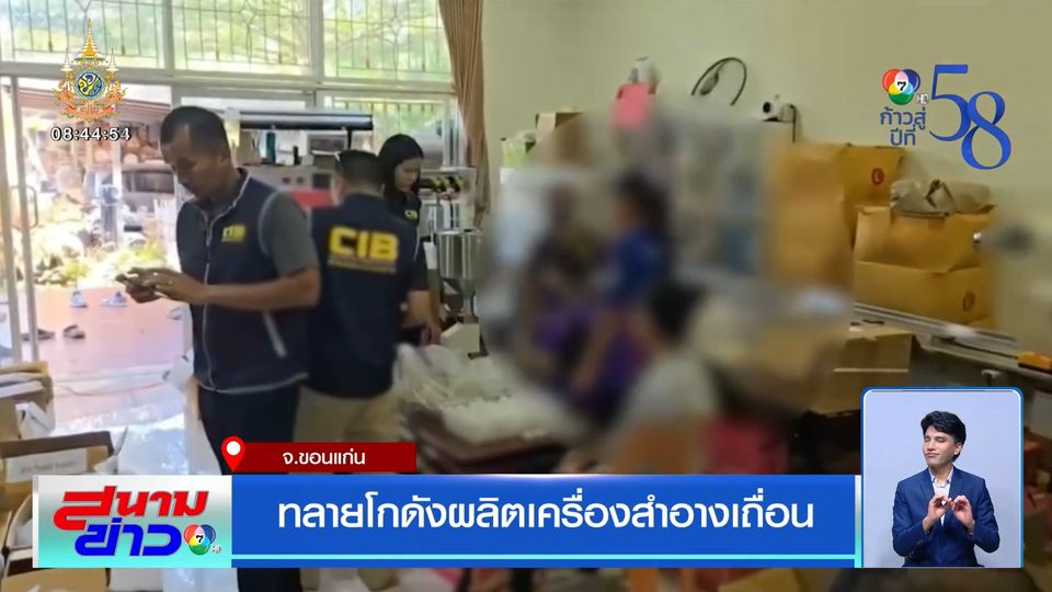 สนามข่าว 7 สี - ยังคงมีเครื่องสำอางเถื่อนที่บางทีเลียนแบบของจริง บ้างก็ทำแบบสูตรสำเร็จขึ้นมาขาย คนใช้ผิวหน้าเสียโฉมตลอดกาลก็มี ยังคงมีให้เห็นเรื่อย ๆ เช่นรอบนี้ตำรวจบุกจับได้คาบ้าน เจอของกลางเพียบ