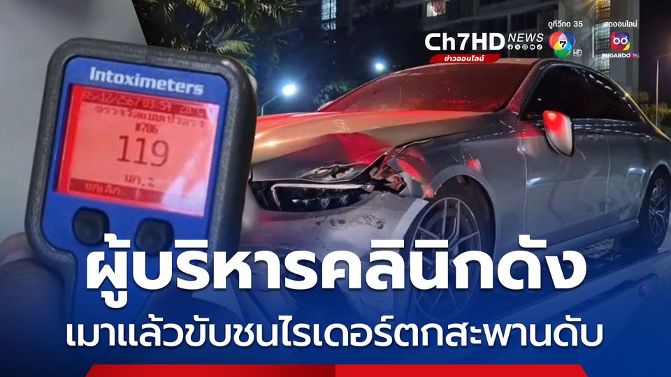 ผู้บริหารคลินิกดัง ซิ่งเบนชนไรเดอร์หญิงตกสะพานสะพานไทย-ญี่ปุ่นเสียชีวิตย่านพระรามสี่ ตำรวจตรวจปริมาณแอลกอฮอล์ พบว่าเกินกว่าที่กฎหมายกำหนดถึง 119 มิลลิกรัมเปอร์เซ็นต์