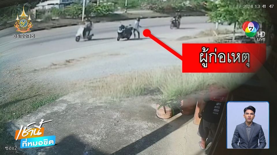 ลุงเจ้าของบ้านถึงกับยืนงง อยู่ ๆ ผู้ก่อเหตุจอดรถจักรยานยนต์ที่ริมถนน ใช้ก้อนหินขว้างใส่รถจักรยานยนต์ที่ผ่านมาอย่างแรง