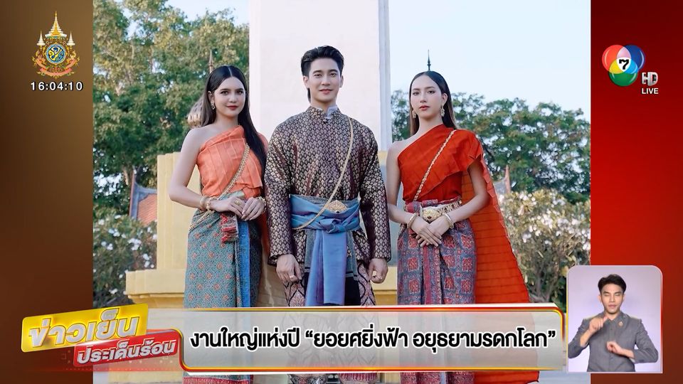 ข่าวเย็นประเด็นร้อน - เรียกว่าเป็นงานใหญ่แห่งปีของอยุธยาจริง ๆ สำหรับงาน "ยอยศยิ่งฟ้า อยุธยามรดกโลก" ประจำปี 2567 โดยประกาศความพร้อมแถลงข่าว จัดการแสดงแสง-เสียง อันยิ่งใหญ่ตระการตา เพื่อเป็นการเฉลิมฉลองที่ได้ขึ้นทะเบียนอุทยานประวัติศาสตร์พระนครศรีอยุธยา เป็นมรดกโลกทางวัฒนธรรมแห่งสหประชาชาติ (UNESCO) ครบรอบ 33 ปี