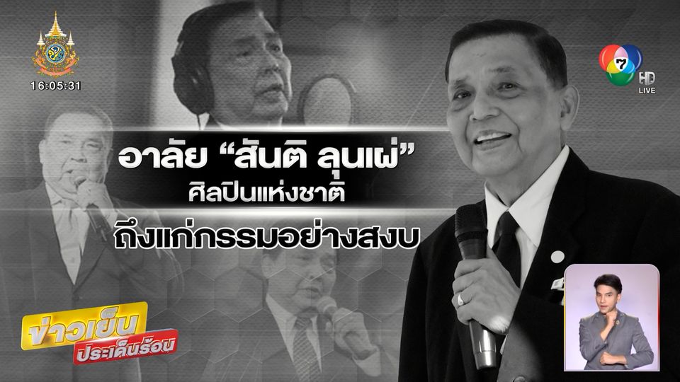 ข่าวเย็นประเด็นร้อน - "สันติ ลุนเผ่" ศิลปินแห่งชาติ สาขาศิลปะการแสดง นักร้องเสียงทรงพลัง ตำนานเพลงรักชาติ ถึงแก่กรรมอย่างสงบ ในวัย 88 ปี