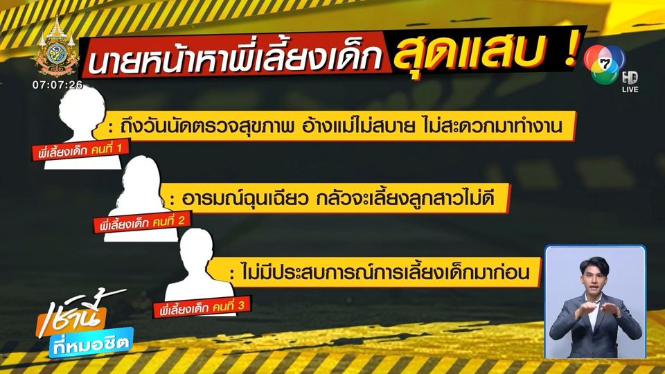 เช้านี้ที่หมอชิต - เตือนภัยกลุ่มคุณแม่มือใหม่ ที่กำลังมองหาพี่เลี้ยงเด็ก อาจจะต้องระมัดระวังมากขึ้น ในการติดต่อกับนายหน้าของบริษัท ไม่เช่นนั้นอาจถูกเชิดเงินไปฟรี ๆ แบบนี้ พี่เลี้ยงก็ไม่ได้